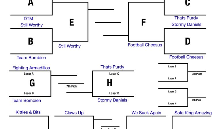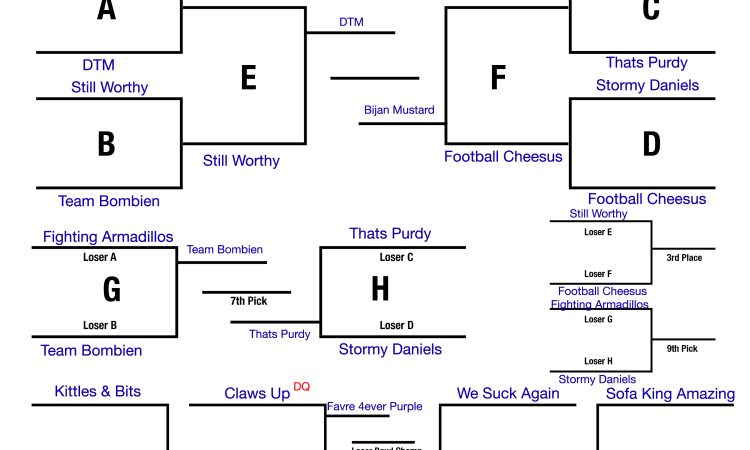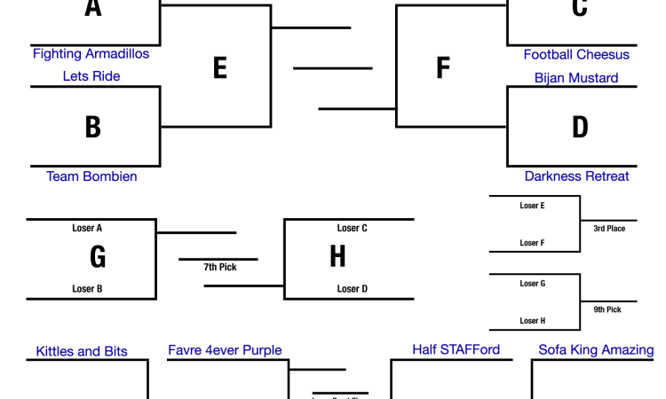 Wow, we made it! We had some really close races that literally came down to the last game. For me, getting in meant Aubrey outscoring Higgins which I was not expecting to happen but here we are. Congrats to all the playoff teams! Don’t forget we have a loser bowl as well as if you get knocked out of the main playoffs, you still play for draft position! I will post that custom bracket before next week when it matters.